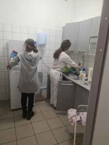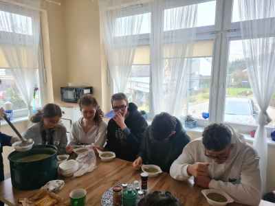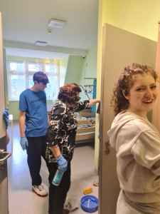 Kolejnym miejscem, które odwiedziliśmy, było Stowarzyszenie Hospicjum Królowej Apostołów w Tanowie. Po przybyciu uczniowie klasy 3a zostali podzieleni na kilka grup zadaniowych. Każda z nich realizowała inne prace – jedni rozwieszali lampki, inni myli meble, drzwi i parapety, a kolejni porządkowali pomieszczenia gospodarcze, w tym piwnicę. Choć czas mijał bardzo szybko, każdy wykonał swoje zadanie z radością i chęcią niesienia pomocy. Na koniec uczniowie zostali poczęstowani domową zupą, którą z apetytem zjedli. Dziękujemy, że mogliśmy zrobić coś dla innych, że mogliśmy dać coś od siebie.