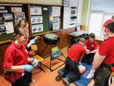 W czwartek 16.04 drużyna z naszej szkoły w składzie: Joanna Siemiątkowska, Emilia Mularzuk, Łukasz Pawłowski, Aleksander Sobejko oraz Tymoteusz Łuczkowski zdobyła 1. miejsce na XXXII zawodach rejonowych pierwszej pomocy organizowanych przez Polski Czerwony Krzyż. Pod czujnym okiem Pani Katarzyny Piotrowskiej zmierzyliśmy się ze scenkami pozorowanymi i udało nam się pokonać 6 innych drużyn! W naszym sukcesie miał swój wielki udział Pan Dominik Tarnas - instruktor PCK. Było dużo emocji a w maju będziemy próbować swoich sił w etapie wojewódzkim, który tym razem odbędzie się na Wałach Chrobrego. Brawo!